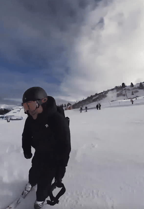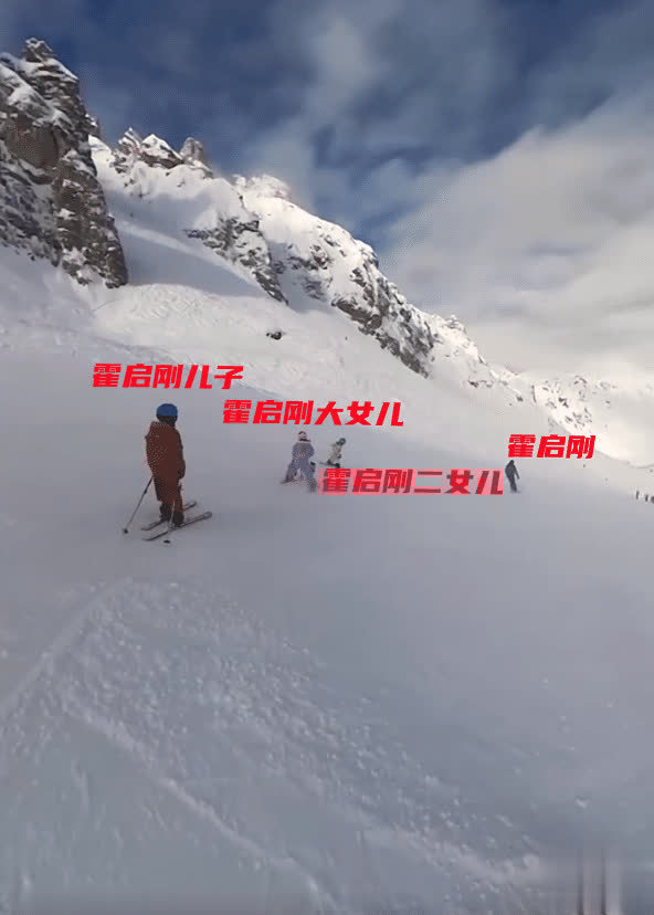 郭晶晶老公霍启刚打头阵,身穿一身黑色滑雪服最先出场。郭晶晶此前受访曾透露,她的滑雪就是老公霍启刚教的,所以,霍启刚的滑雪技术应该是家里最棒的。